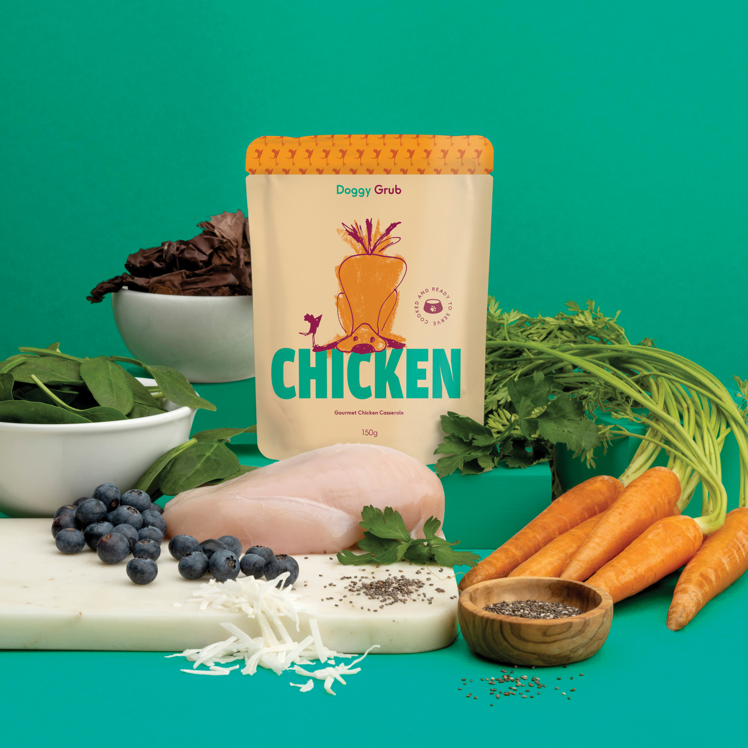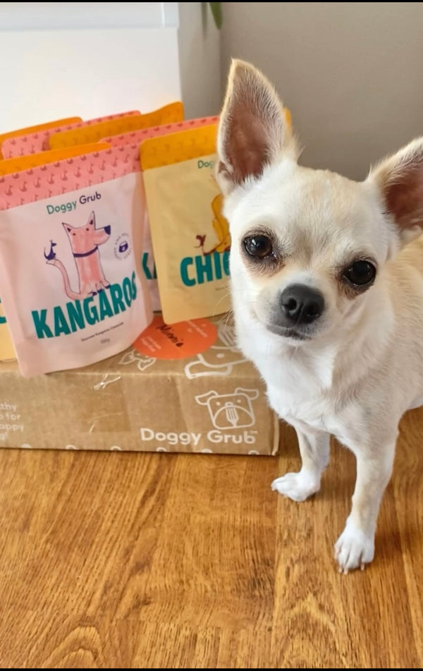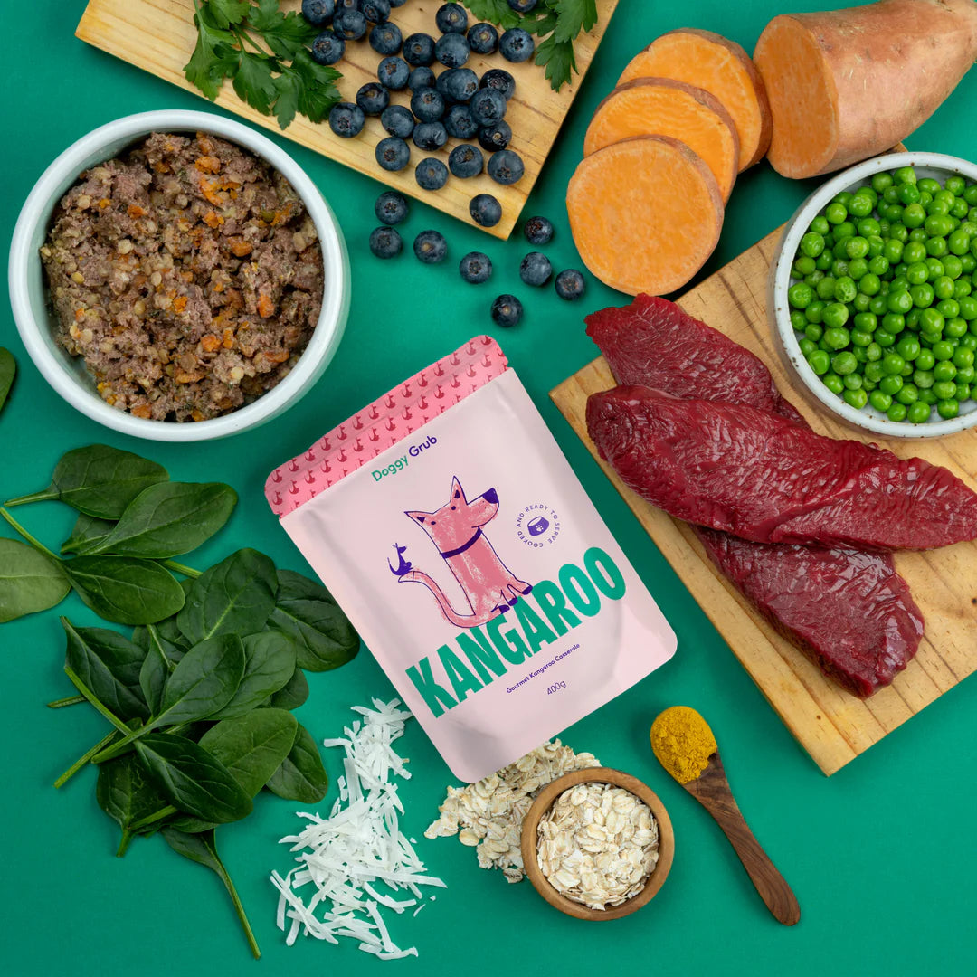 Doggy Grub is crafted using a mix of human-grade meat, veggies & superfood. Nothing you don't know or can't pronounce! No rendered meat, by-products, preservatives or artificial flavour or colour, no nasties EVER.